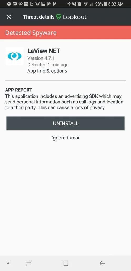 Fast forward to this morning while I was going through notifications and found this frightening alert from Lookout which is my mobile anti-virus. Essentially what it says is that the makers of the app have the ability to forward a lot of information to third parties! The way the camera system’s easy connect “P2P” works is that your recorder is already talking to one of LaView’s servers. If they can’t even be trusted with making a secure phone app how could you ever think of trusting them with authorization access to your cameras?
